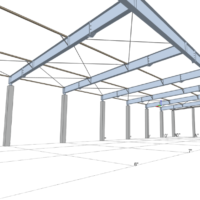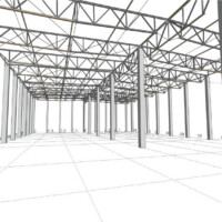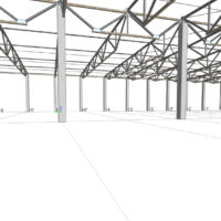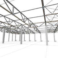 Konstrukcja składająca się z żelbetowych prefabrykatów i stalowej, kratowej konstrukcji dachu