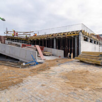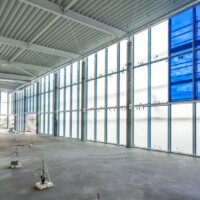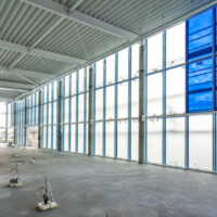 Część stropów o dużej rozpiętości wykonano jako płyty zespolone ze stalowymi belkami. Zapewnia to małą wysokość konstrukcji i optyczną lekkość całego obiektu.